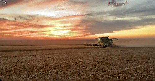 Cutting wheat in Montana. The sunsets are beautiful! (Photo by Ian.)