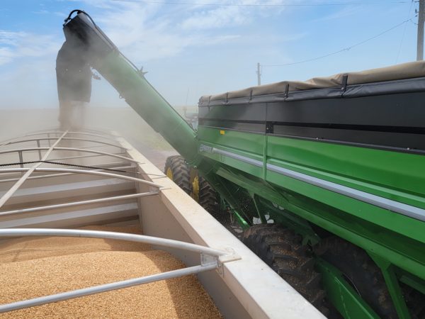 Southwest Oklahoma–Wheat harvest has just been full of tough luck lately. The weather has delayed our progress at our first stop. It’s getting late and we need to get the wheat cut here so we can move up the road. We caught another rain last night. We just can’t roll. It feels like we have not had a big day of cutting yet. We want to get over some acres and get the grain hauled to the elevator but the weather has been challenging.
