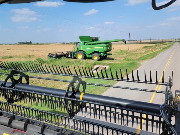 Our ten-day forecast is hot and sunny with highs in the upper 90s and into the 100s. We have been dealing with mud in the fields which is no fun at all. The farmers don’t want tracks in the fields so we have left a few mud holes. The conditions overall have been giving us tough luck. I just want to cut wheat all day every day but Mother Nature has been a battle recently.
