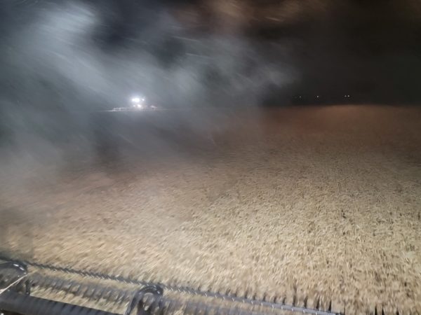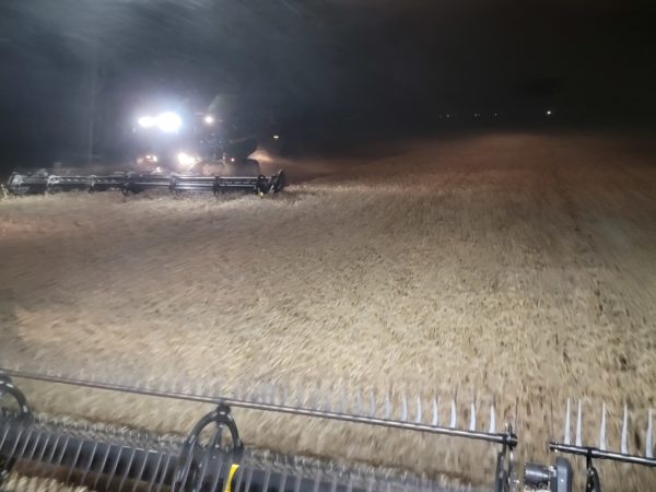 I was waiting on my tractor grain cart so I could unload my full hopper of wheat. It rained 3 inches after midnight and I wasn’t even expecting it. The weather has definitely been unpredictable recently.