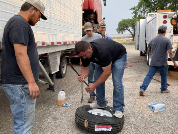 Before we took off for our last stretch to Fort Benton, the guys were busy changing any and all iffy looking tires to help avoid issues. Whereas that was helpful in that department, it didn’t help when our service truck decided it wanted to over heat right outside of Lewistown. I didn’t mind, I was tired and hopped into Paul’s sleeper with Zoey to take a little power nap while he sorted the service truck out. I felt a little bad for sneaking a sleep in when Paul was busy figuring things out, but I sure was in better shape to finish our journey. After arriving late evening, we parked everything, got a bite to eat, and called it a day.