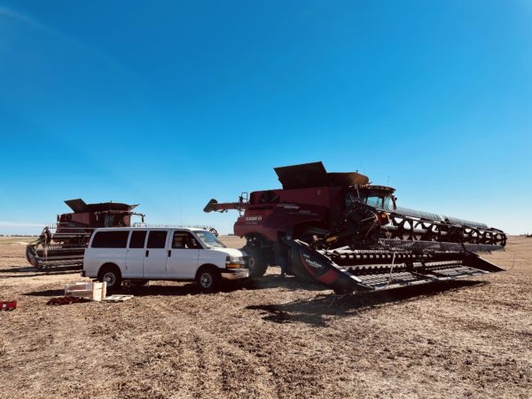 This week has brought on some challenges, though. While the beans are dry around Minnesota and Iowa, we’ve encountered a few fields where the plant is still very green and hard to cut. Things got so tough we were only able to run at about half the speed we should be running. After machines started plugging, Paul made some modifications to concaves and changed rotor configurations to keep material running smoothly through the machine. These changes solved the problem, and we may still not be running full speed, but this hot weather will hopefully dry the plant down some more so things run better.