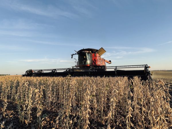 Besides that, everything else is moving along. Gary is sending a machine farther west to Roscoe, South Dakota Monday to start their bean harvest, and he will take a couple machines himself down to Nebraska to work on beans there. It feels like we’re really spread out all over with crews still working by Brookings, South Dakota, Hartley, Iowa, and Round Lake, Minnesota.