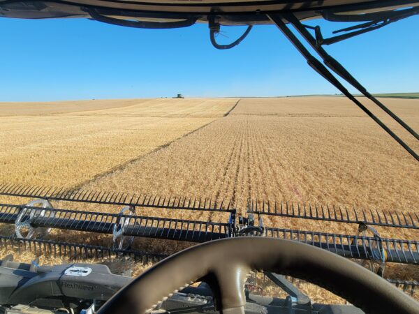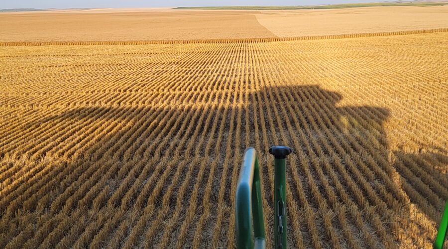 Cutting wheat in South Dakota and about to finish up.