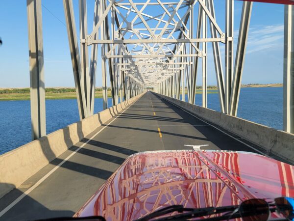 Crossing the bridge at Mobridge early in the morning.