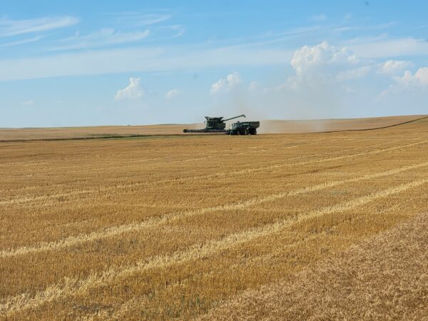It’s now Aug. 15 and we’ve got a section and a half section of spring wheat cut so far in North Dakota. I love the north country and am glad we’re here. Our forecast is continuing to be hot and dry. We’ve got spring wheat, canola and durum to cut here. We’ll be up here awhile.