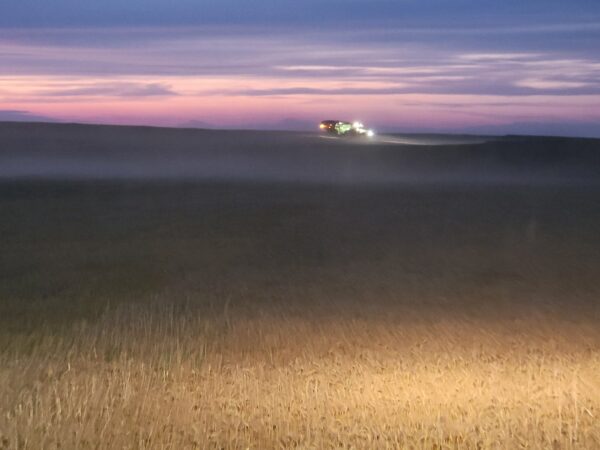A beautiful evening of cutting wheat in North Dakota.
