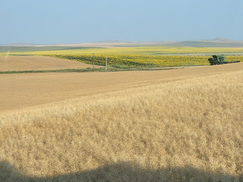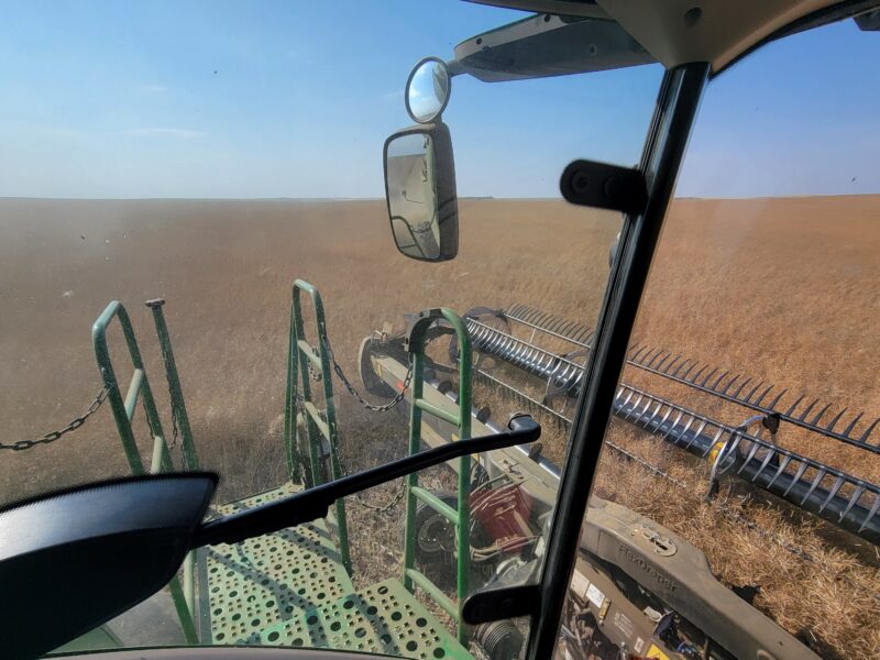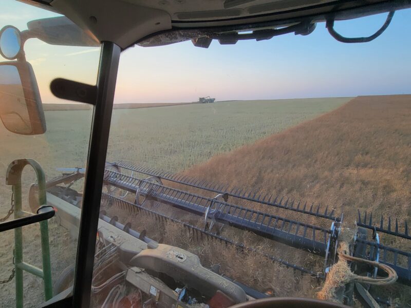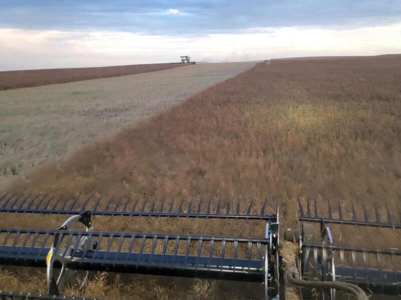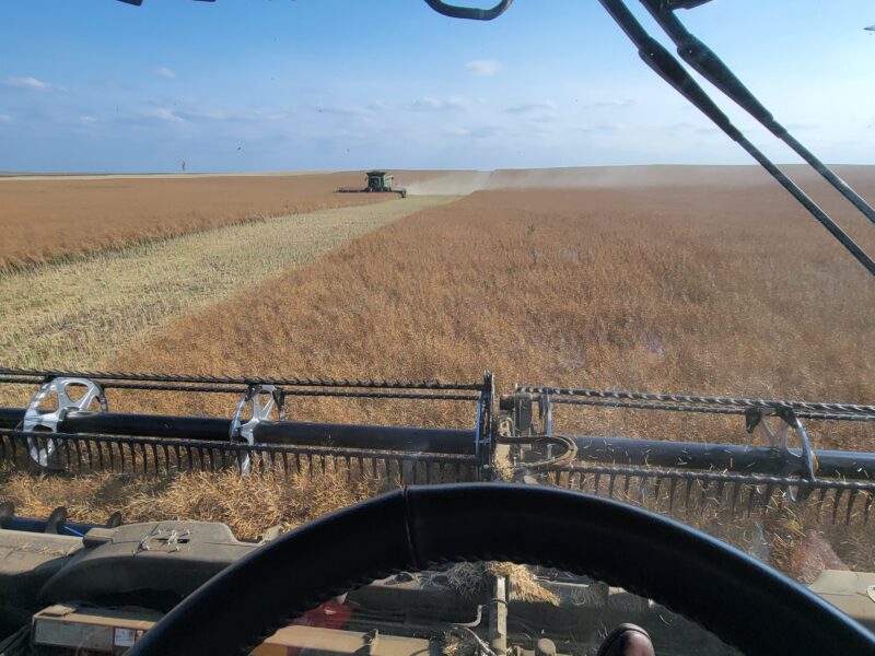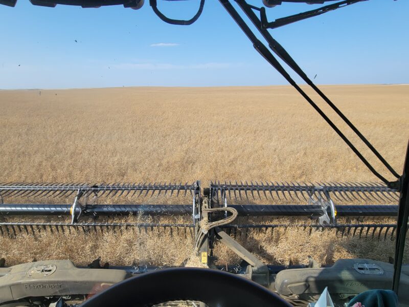 North Dakota — We’ve been harvesting canola the past several days. It’s ripe and cutting nicely. It’s yielding more than 2,000 pounds per acre and is dry, around 5 percent moisture. We’ve been staying busy, and our forecast is mostly clear with highs in the 80s. The crops in this area will disappear quickly now “if” the weather stays good. Canola needs cut when it’s ripe because wind shatters the grain, and there is wind in the forecast.